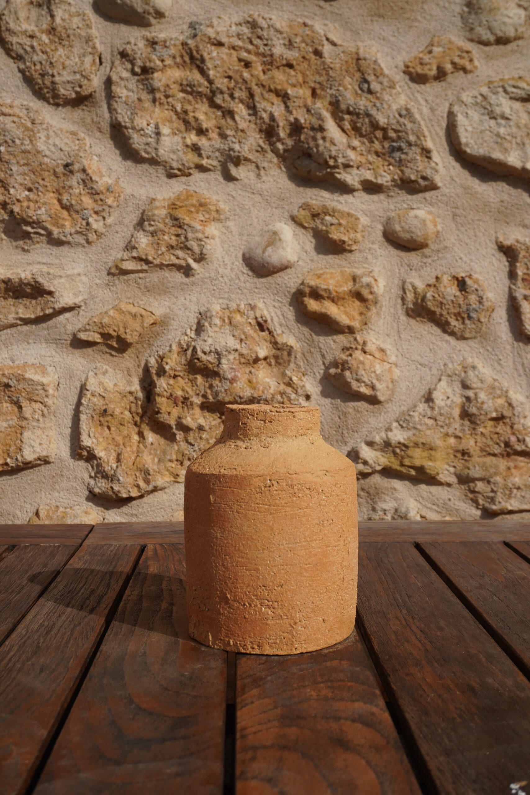 Gerro artesanal fet a mà en ceràmica, compacte i versàtil, ideal per decorar qualsevol espai de la llar. Amb una alçada de 14 cm, una amplada d’11 cm i una obertura de 4,5 cm, pesa 815 g, cosa que li dona estabilitat i presència malgrat les seves dimensions reduïdes. Una peça senzilla i elegant, perfecta per lluir flors fresques o seques amb un toc natural i artesanal.